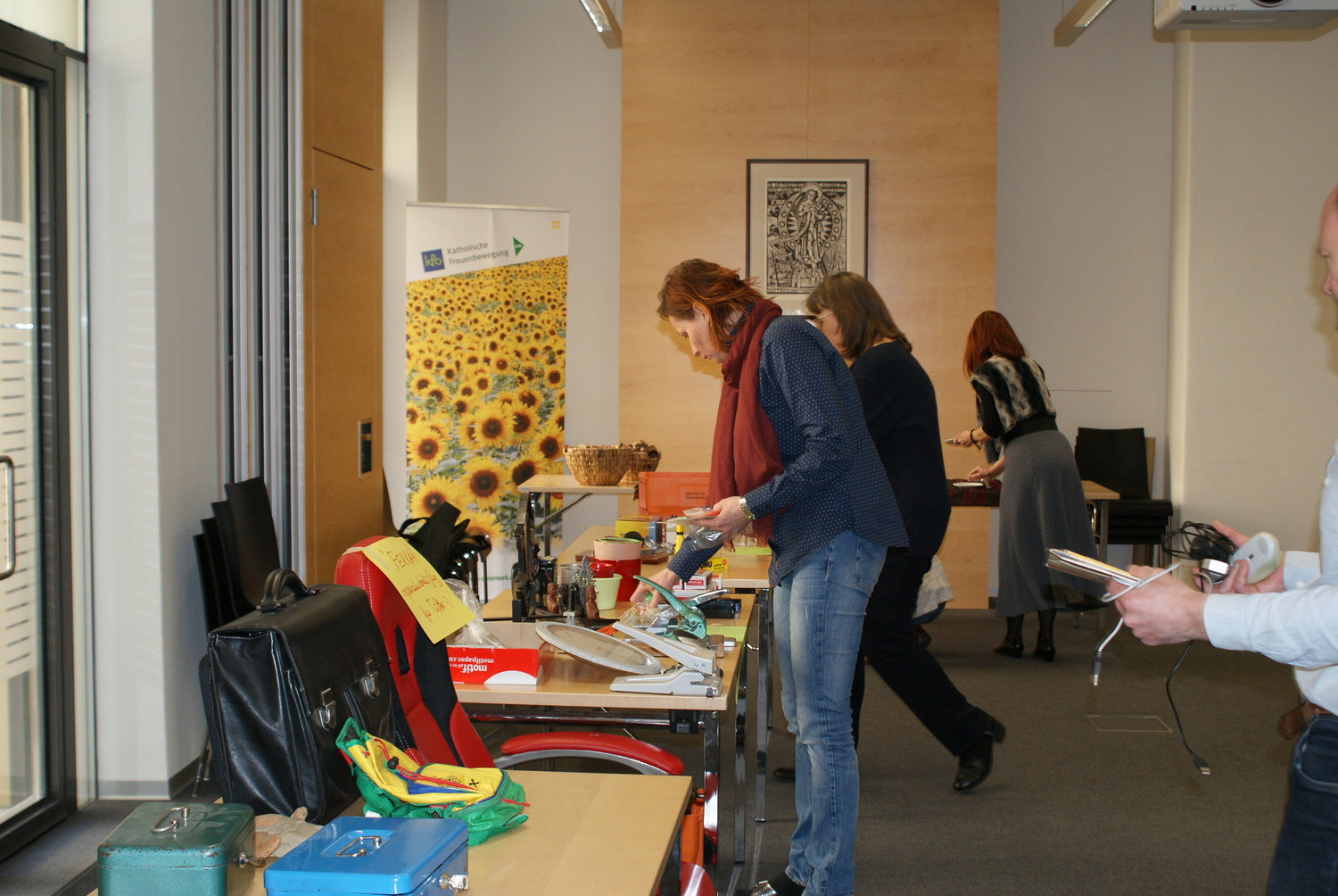 Egal ob Mappen, Kleber, Scheren, Locher, Stifte etc. - alles, was von diversen Abteilungen nicht mehr gebraucht wurde stand zur freien Entnahme im Parterresaal bereit und wartete auf einen neuen Besitzer. So wurde bereits verstaubten Dingen neuer Glanz verliehen.