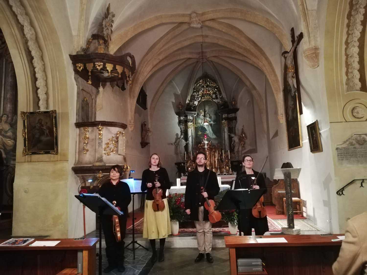 Am Samstag, dem 30.10.2021 fand in der Margarethenkirche in Peggau ein erlesenes Barockkonzert für 4 Geigen statt. Juliane Oberegger, Organistin in unserer Pfarre, musizierte mit 3 weiteren Studenten des Instituts für alte Musik der Kunstuniversität Graz auf anspruchsvolle und elitäre Weise.
