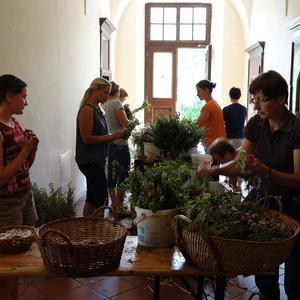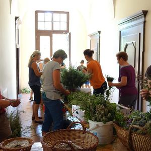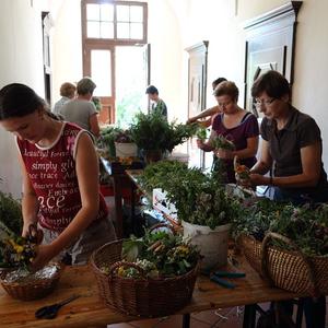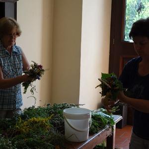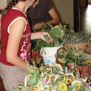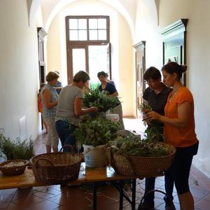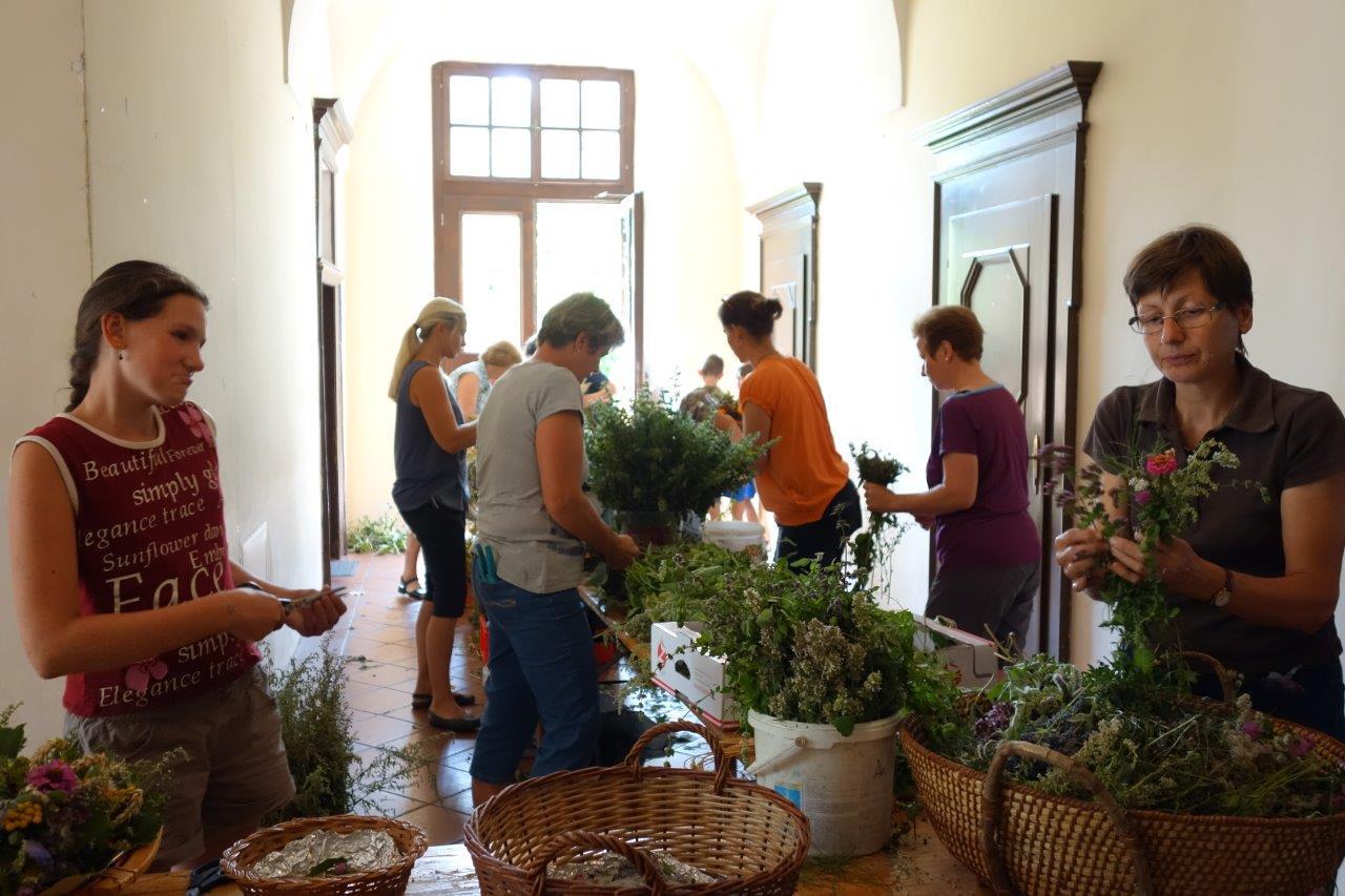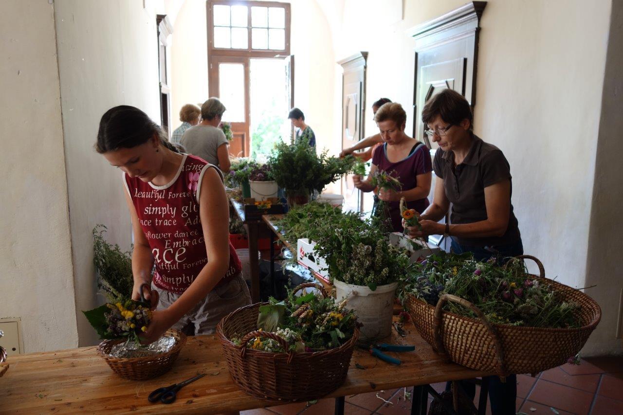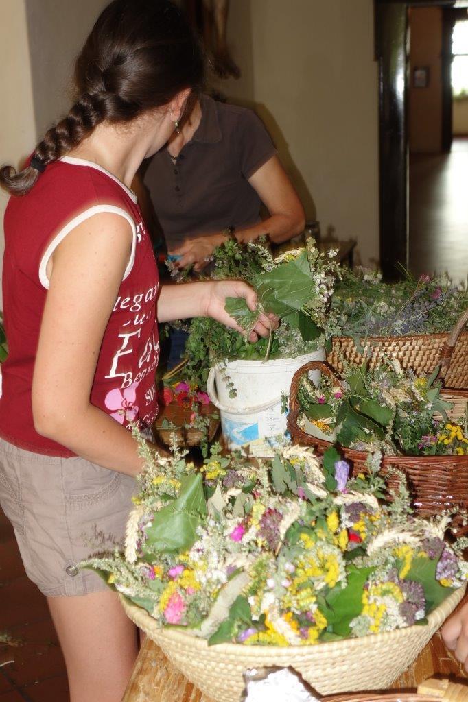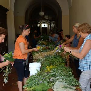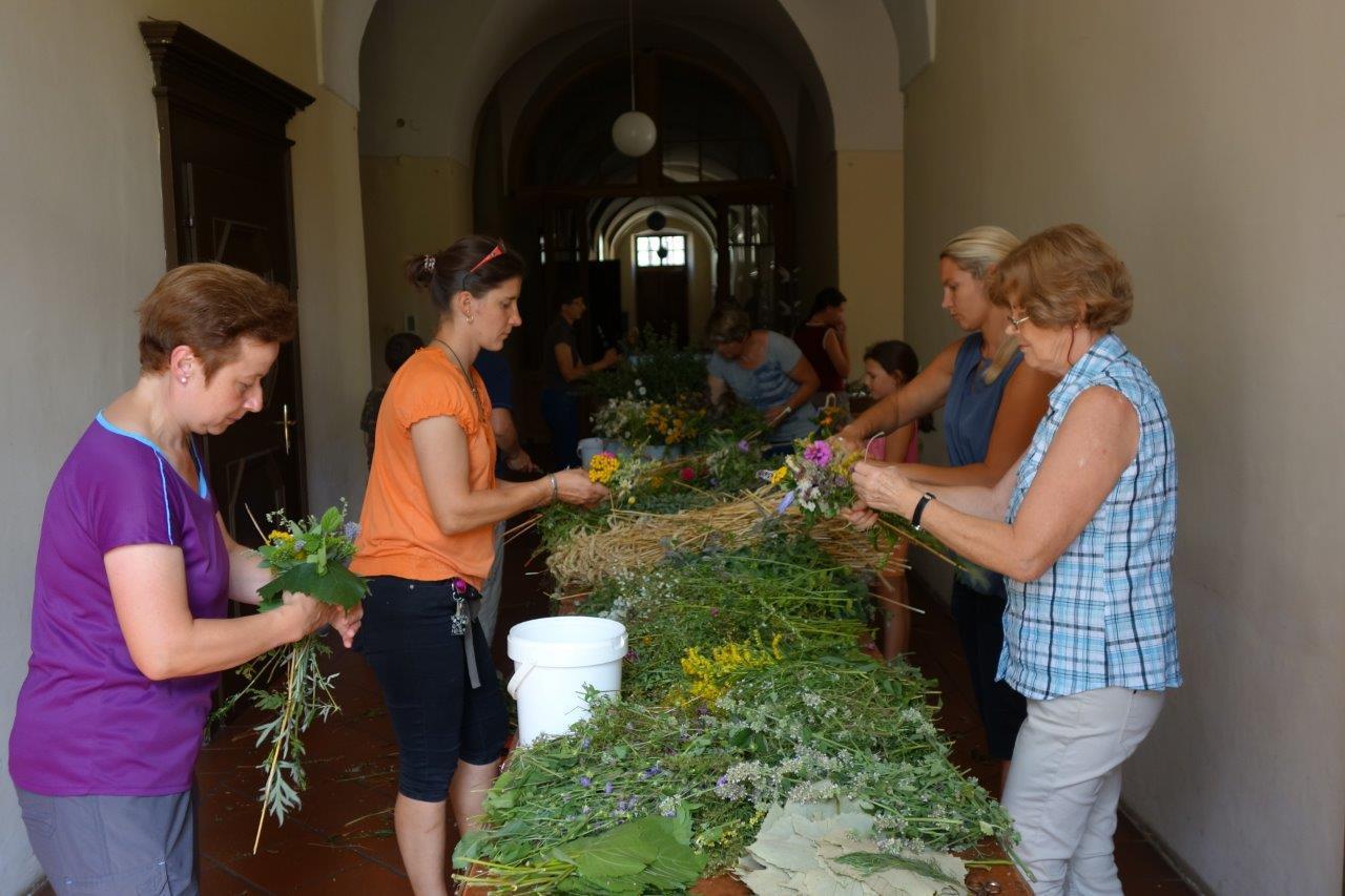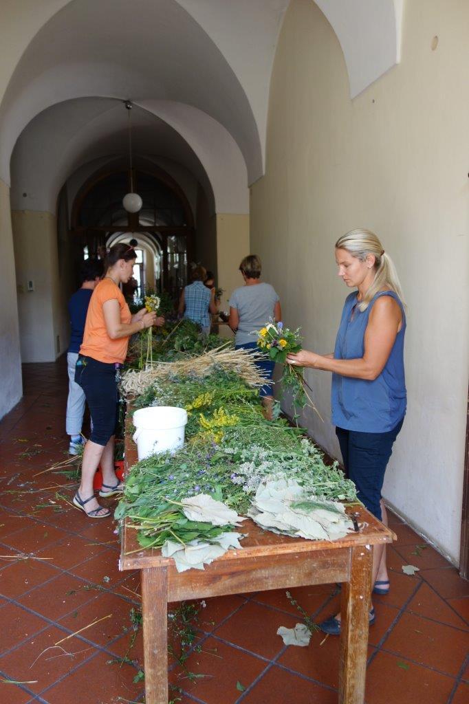 Kräuterbüscherlbinden im Klostergang der Pfarrkirche am 14. August 2017