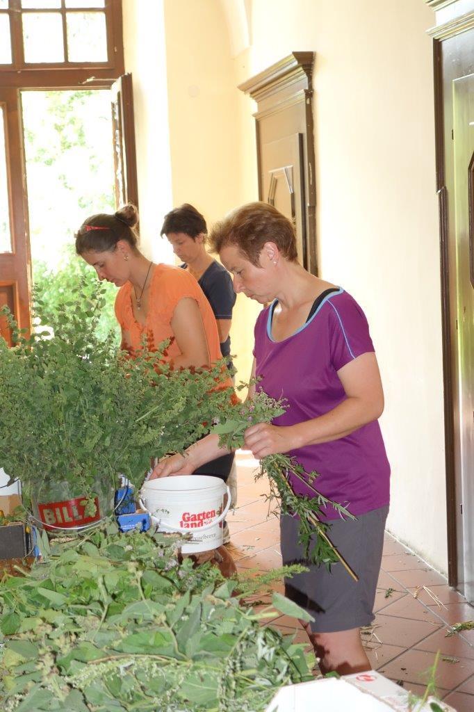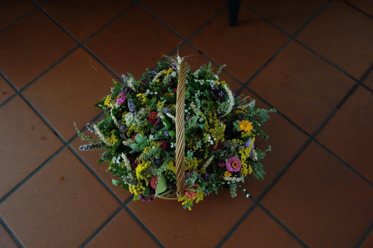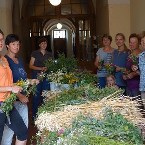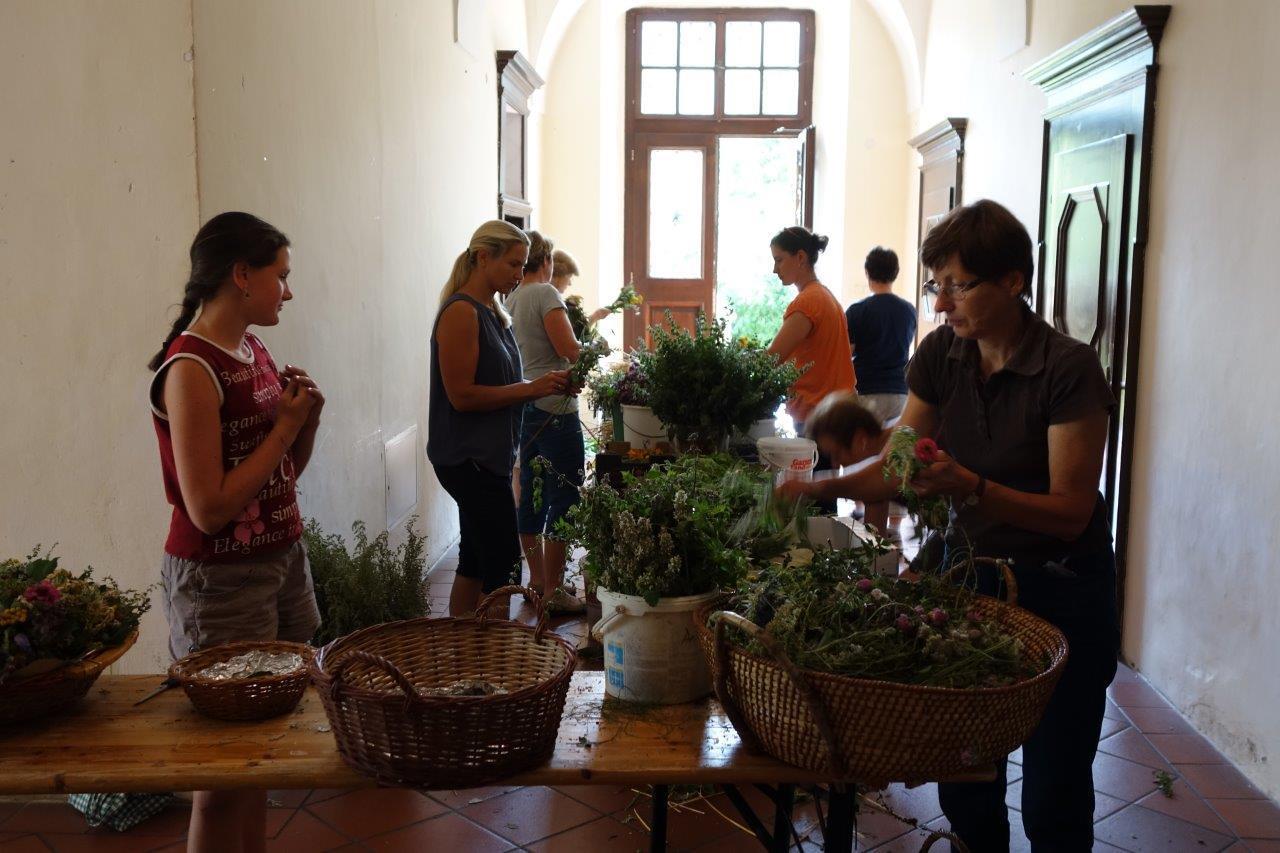 Am Vortag zum Patronatsfest Mariä Himmelfahrt luden die Bäuerinnen unsere Pfarrgemeinde traditionell zum Kräuterbüscherlbinden in den Klostergang der Pfarrkirche ein.