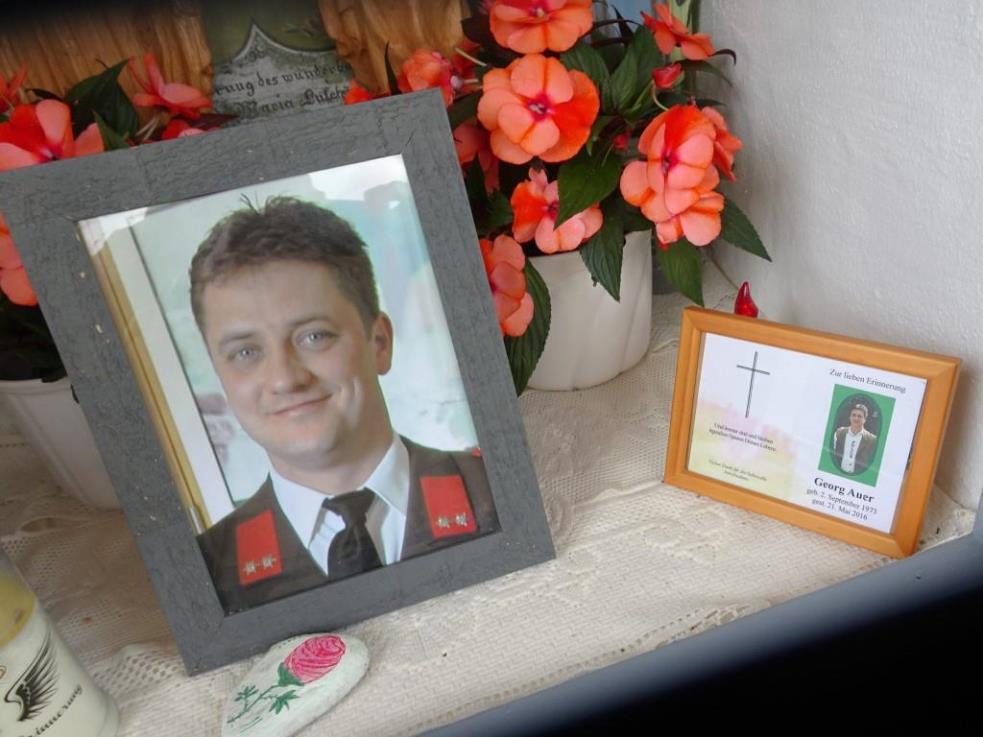 Am 21. Mai 2023 war auch der 8. Todestag des allzu früh im Alter von 42 Jahren verstorbenen Sohnes Georg Auer. Zur liebevollen Erinnerung wurde ein schönes Bild von ihm und ein Trauerandenken ins Zentrum der Mauernische gestellt.