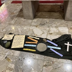 mit Symbolen vor dem Altar fordern zur persönlichen Vertiefung heraus.