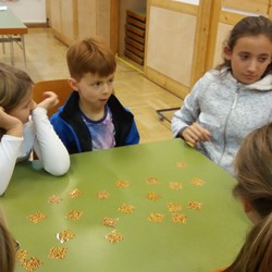 Zu Allerheiligen gehören natürlich auch die Stille und das Licht. Mit den zuvor schön gestalteten Kerzen erforschten wir unsere dunkle Kirche nach Heiligen und suchten uns einen Platz, auf dem wir noch nie gesessen sind. Die Stille des Kirchenraumes konnte auf uns wirken und die Kinder freuten sich danach das Allerheiligen- und Allerseelenfest mit Besuch der Gräber, Kerzenlicht und Striezelteilen in der Familie zu feiern.