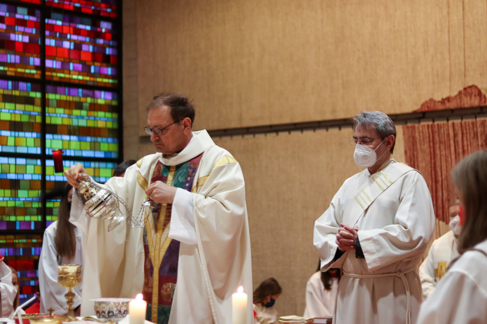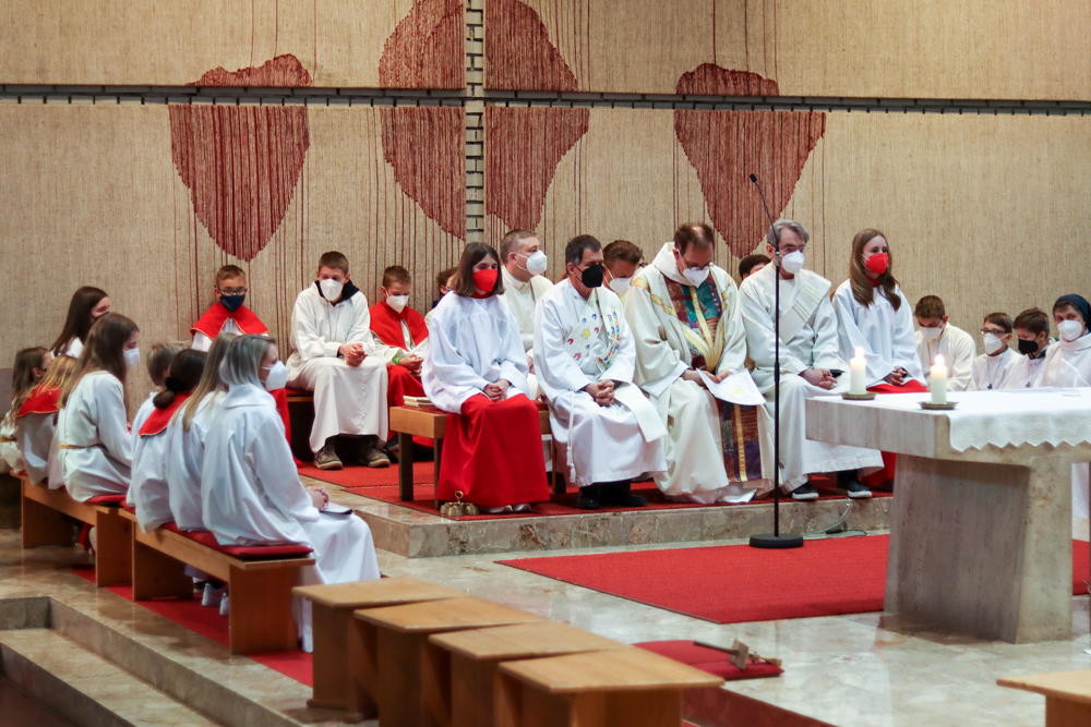 Am Gründonnerstag feierten wir eine gemeinsame Seelsorgeraum-Messe in der Pfarrkirche Lieboch. Mit dabei waren drei Priester, drei Diakone, drei Pastoralreferentinnen, über 20 Ministranten und verschiedene weitere Dienste aus unseren sechs Pfarren.