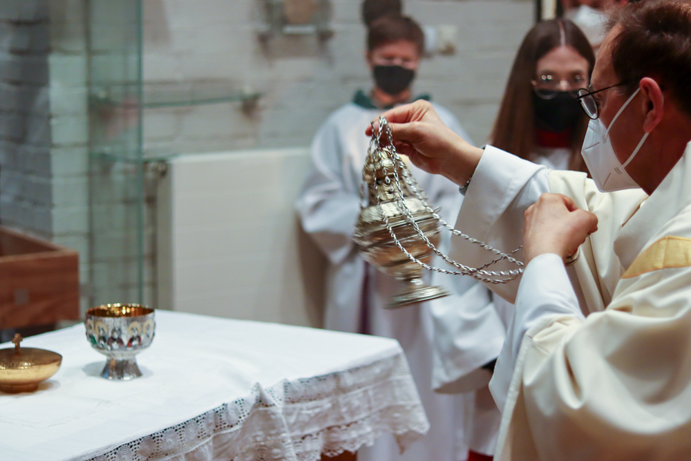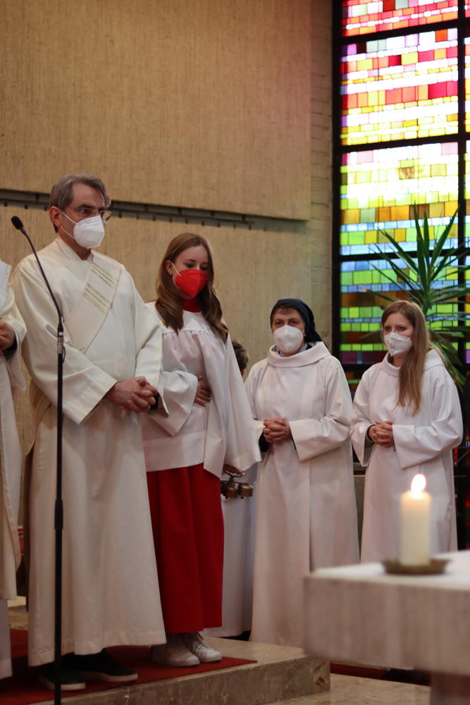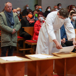 In einer etwas anders gestalteten Fußwaschung wurde jenen gedacht, die nicht oder nicht mehr am Leben der Kirche teilnehmen können oder möchten. Die Stühle blieben leer. Symbolisch für Rand- und Zielgruppen und jene Menschen, die unsere Gesellschaft mitprägen, wurden Kerzen entzündet. Als Zelebranten fungierten unsere drei Priester, drei Diakone sowie alle Pastoralreferentinnen und Referenten, welche den Sendungsauftrag im Seelsorgeraum Kaiserwald erfüllen.