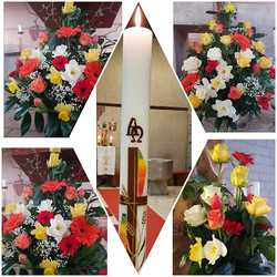 Ein großes Danke an unsere Künstlerin Resi, die schon seit vielen, vielen Jahren unsere wunderschöne Osterkerze gestaltet und auch mit ihrem Team jedes Jahr wieder prächtigen Blumenschmuck in der Kirche gestaltet.