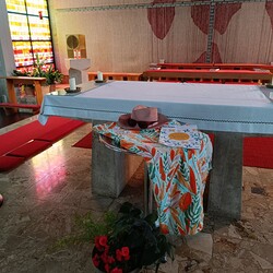 "Gesegnet in den Sommer" war das Thema des Gottesdienstes am Ferienbeginn. Wunderschöne Lieder vom Jugendchor, tolle Gedanken und Impulse von Pfarrer Claudiu Budau zu den Bibelstellen auch in Bezug auf die Sommersymbole vor dem Altar halfen uns gut behütet (Strohhut), mit einem neuen Blickwinkel (Sonnenbrille) und uns auf neue Themen einstellend (Zeitschrift) in die Sommermonate zu starten.