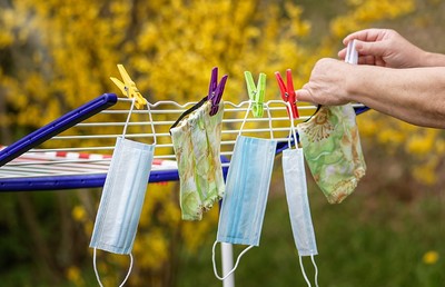 Die ökumenischen Gottesdienste beginnen wieder. Wir sind eingeladen, Masken zu sammeln, welche zu einem Getragen-Tuch verbunden werden.